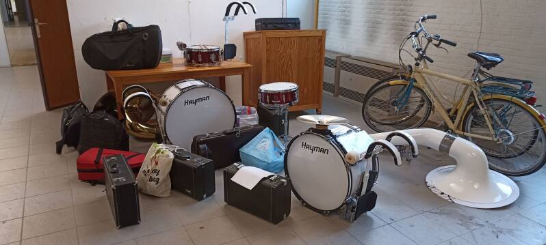De webmaster ging een kijkje (en een foto) nemen in een soort van 'opslagruimte' en daar werd duidelijk dat de instrumenten vol ongeduld op hun muzikanten lagen te wachten. Al snel kwamen die tevoorschijn en werd er 'warm geblazen'.